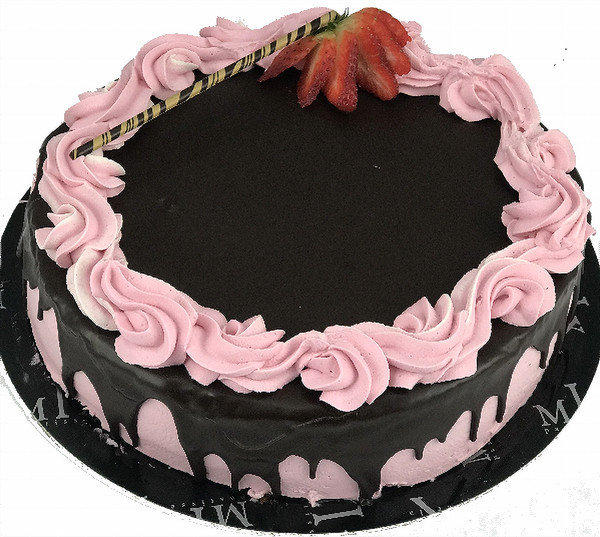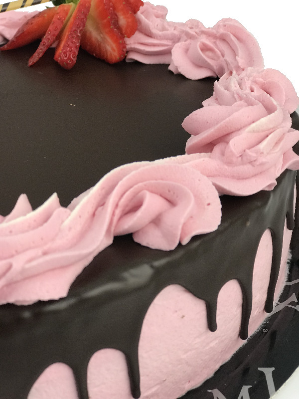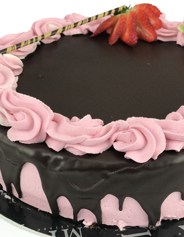 Tarta de fresa ,nata y chocolate, con fresas naturales en su interior . Bañado de chocolate. Opcional sin frutos secos.